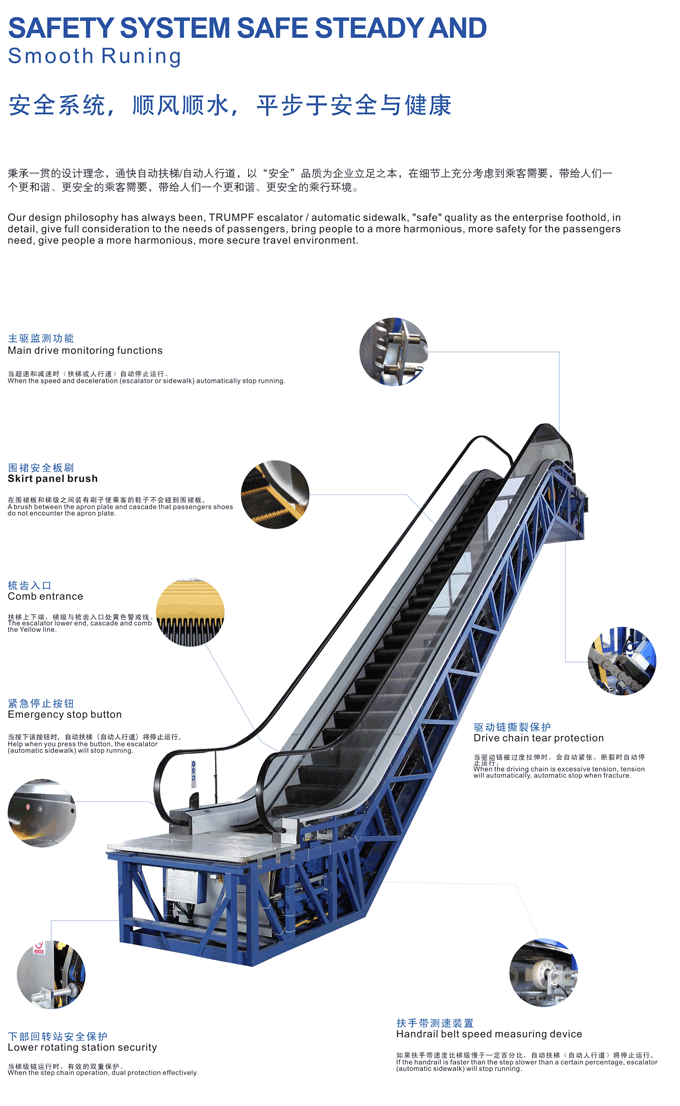 自動(dòng)人行道:moving sidewalk,不大于12度。 在水平或微傾斜方向連續(xù)運(yùn)送人員的輸送機(jī)。適 自動(dòng)人行道用于車站、碼頭、商場(chǎng)、機(jī)場(chǎng)、展覽館和體育館等人流集中的地方。出現(xiàn)于20世紀(jì)初。結(jié)構(gòu)與自動(dòng)扶梯相似,主要由活動(dòng)路面和扶手兩部分組成。通常,其活動(dòng)路面在傾斜情況下也不形成階梯狀。